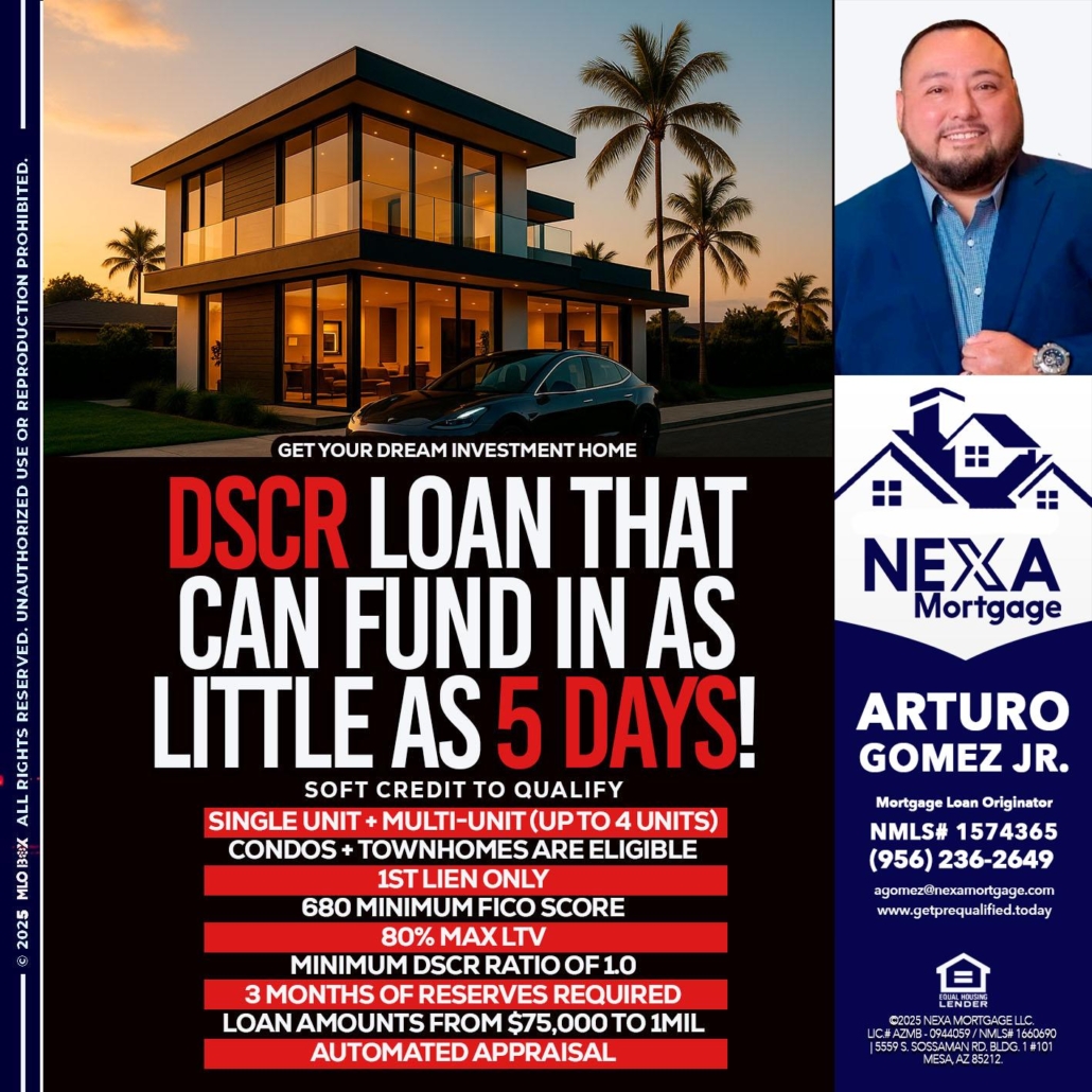 Hi, my name is Arturo Gomez Jr. I’m a Loan Officer with NEXA Mortgage LLC., offering personalized mortgage solutions, fast customized quotes, great rates and service with integrity.