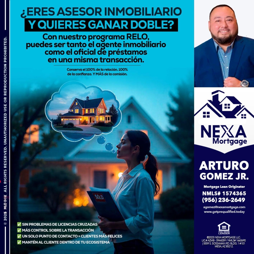 Hola, me llamo Arturo Gomez Jr. Soy un oficial de préstamos que ofrece soluciones hipotecarias personalizadas, cotizaciones rápidas personalizadas, excelentes tasas y servicio con integridad.