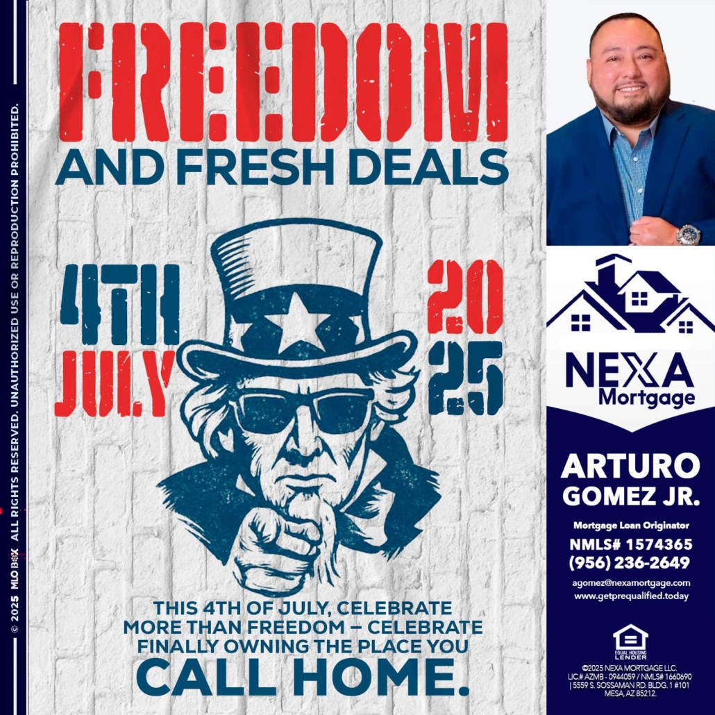 Hi, my name is Arturo Gomez Jr. I’m a Loan Officer with NEXA Mortgage LLC., offering personalized mortgage solutions, fast customized quotes, great rates and service with integrity.