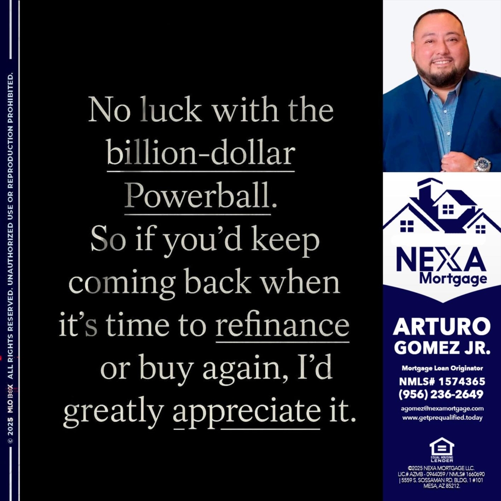 Hi, my name is Arturo Gomez Jr. I’m a Loan Officer with NEXA Mortgage LLC., offering personalized mortgage solutions, fast customized quotes, great rates and service with integrity.