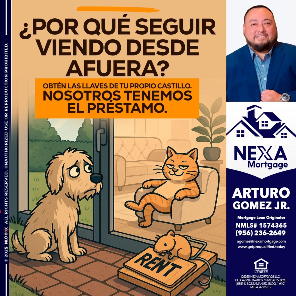 Hi, my name is Arturo Gomez Jr. I’m a Loan Officer with NEXA Mortgage LLC., offering personalized mortgage solutions, fast customized quotes, great rates and service with integrity.