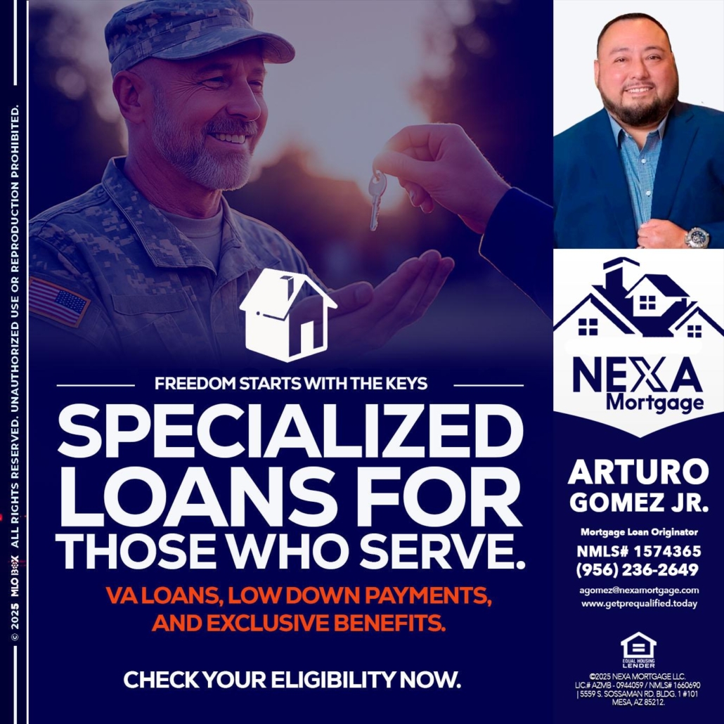 Hi, my name is Arturo Gomez Jr. I’m a Loan Officer with NEXA Mortgage LLC., offering personalized mortgage solutions, fast customized quotes, great rates and service with integrity.