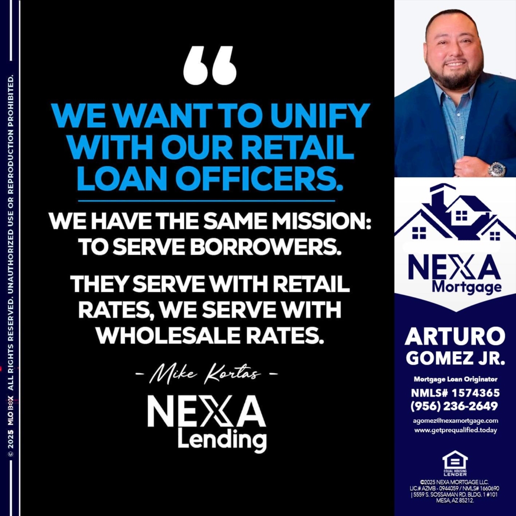 Hi, my name is Arturo Gomez Jr. I’m a Loan Officer with NEXA Mortgage LLC., offering personalized mortgage solutions, fast customized quotes, great rates and service with integrity.